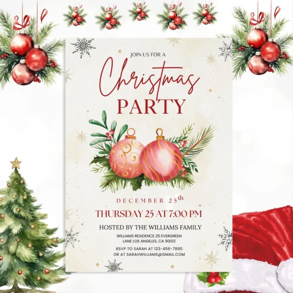 Christmas Party Invitation – Editable Canva Template | Printable Digital Download