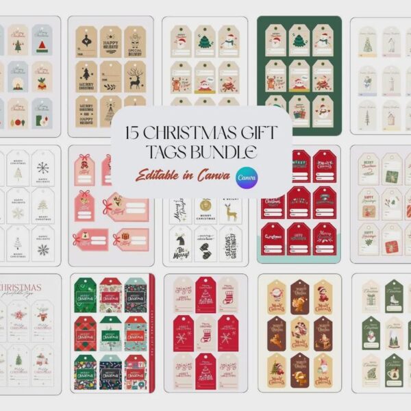 Christmas Gift Tags Bundle – 15 Printable Vintage Holiday Tags
