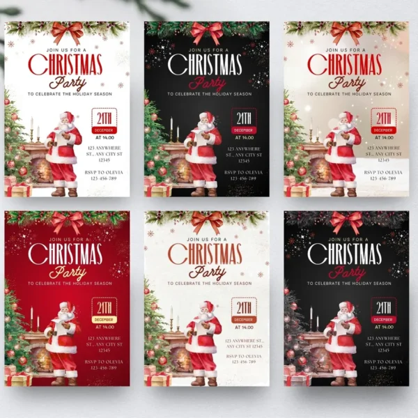 Festive Christmas Invitations – 6 Editable Watercolor Canva Templates