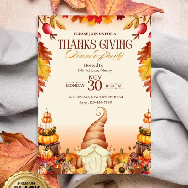 Editable Thanksgiving Dinner Invitation – Fall Party Invite | Canva & Printable | Instant Download