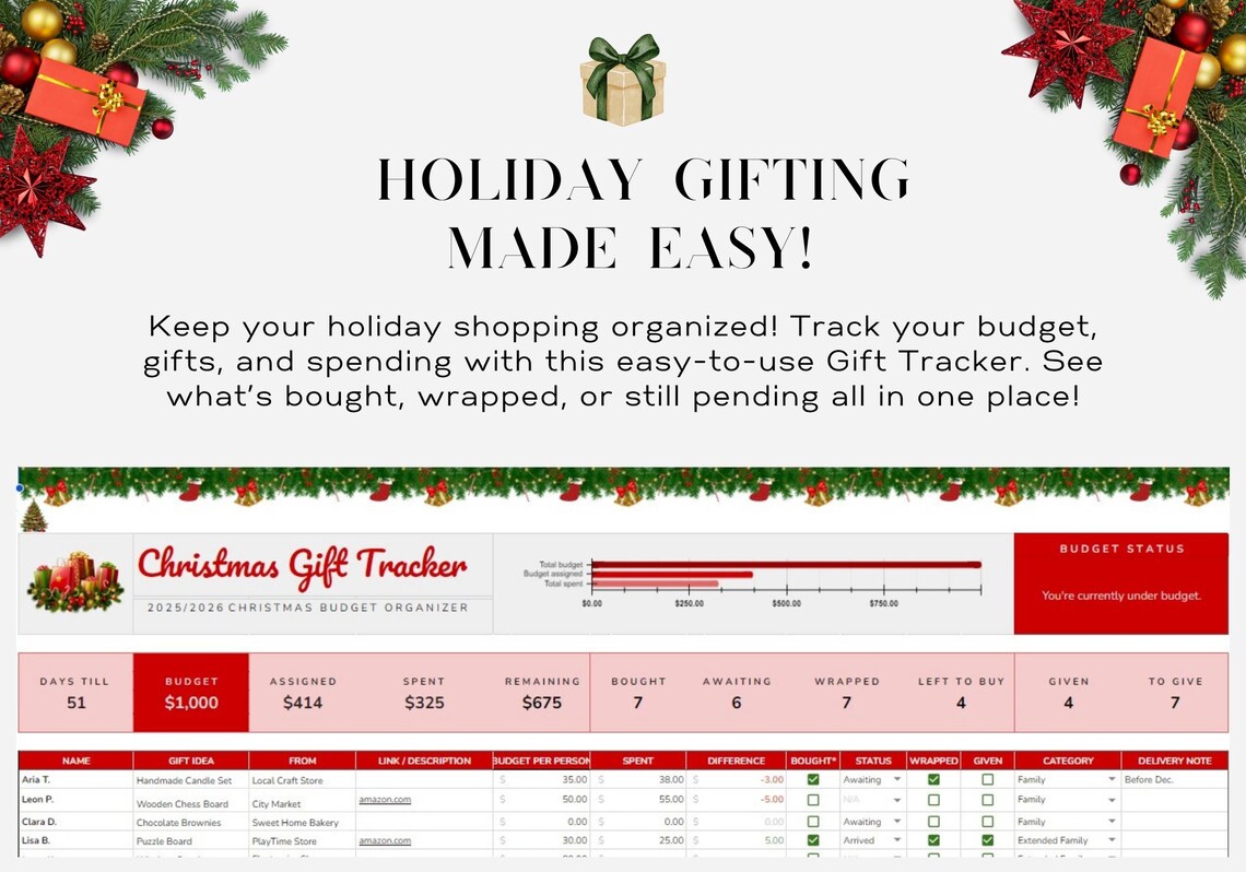 Christmas Gift Tracker & Budget Planner – Google Sheets