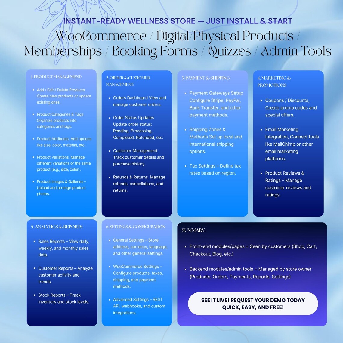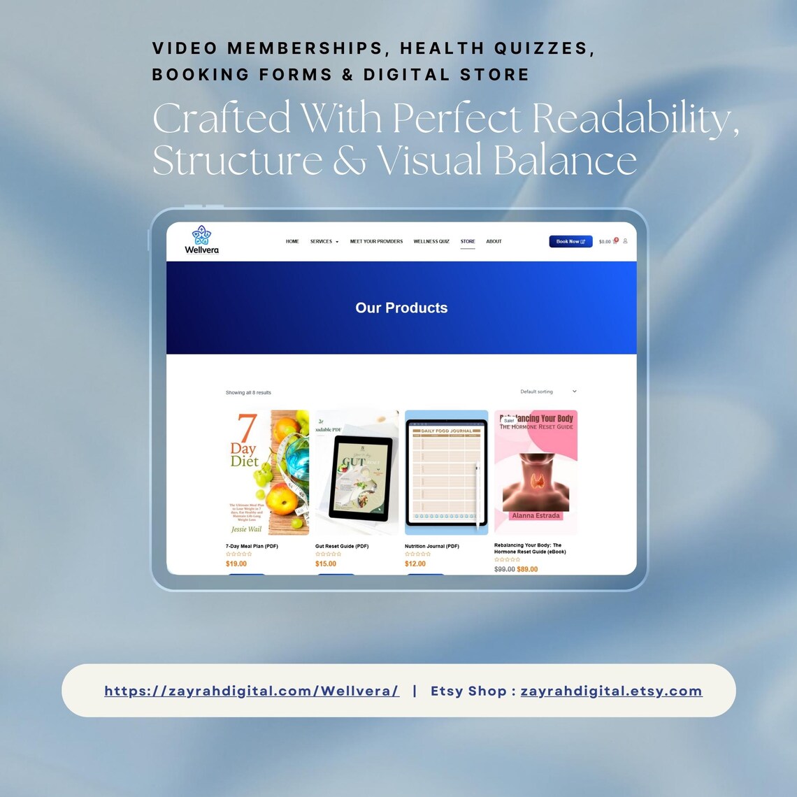 Imagine having a complete wellness website where your services, programs, quizzes, booking forms, memberships, shop & blog are already built and ready to use.
